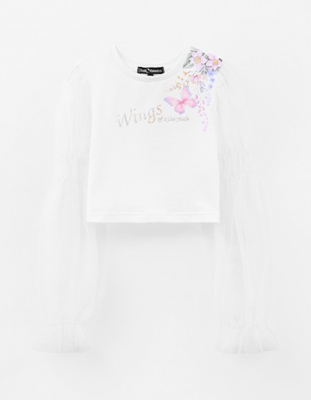Укороченная белая блузка с воздушными рукавами для девочки