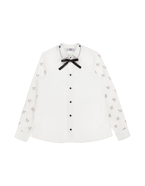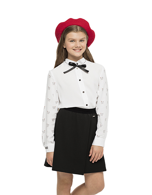 Стильная, удлиненная и расширенная книзу блузка просто необходима на каждый день! В ней очень комфортно благодаря приятной к телу ткани, мягкой спинке! Контрастные рукава с веселыми курочками, очаровательный бантик придают изделию свежесть и теплоту