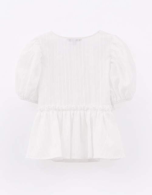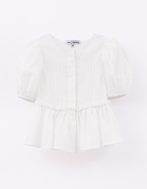 Молочная блузка из мягкой ткани - лёгкая и приятная к телу. Прямой крой с баской создаёт нежный рустик?образ и не мешает движению. Короткие рукава с мягкой лентой удобны в носке. Мережка добавляет деликатности. Потайная застёжка делает модель утончённой.