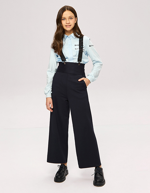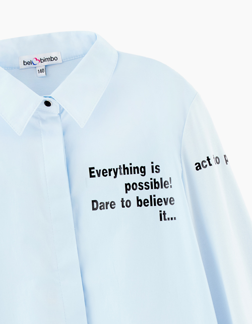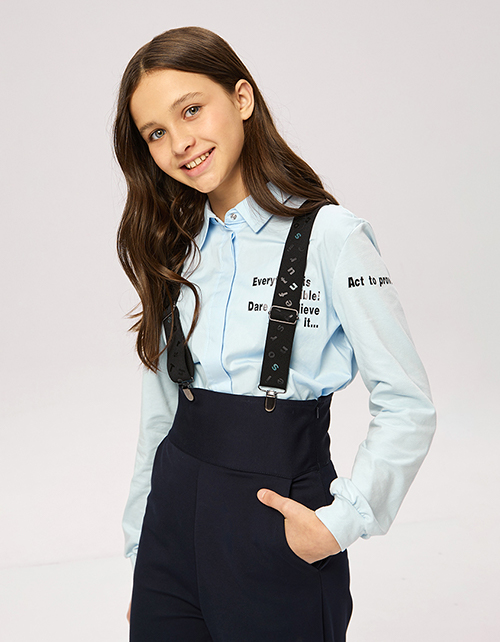 Стильная комбинированная голубая блузка. Модель с лаконичным дизайном подойдет как для школьных, так и повседневных образов. Удобная застежка на кнопки.
