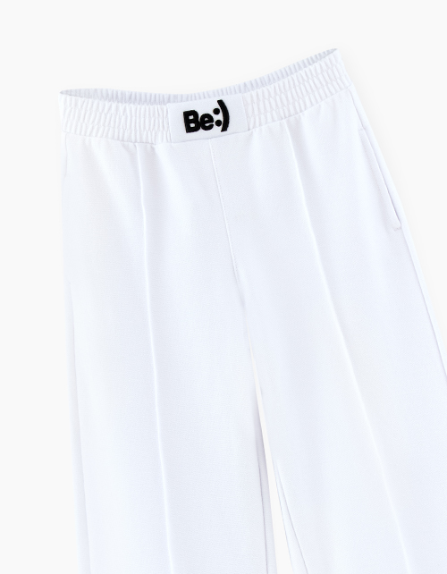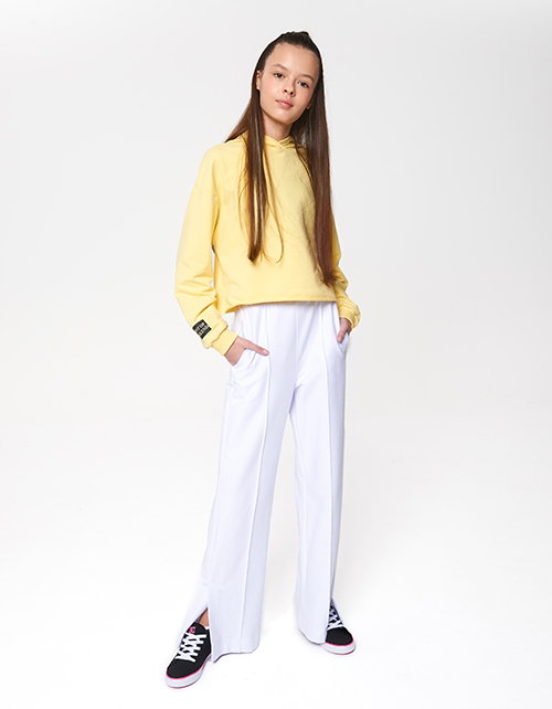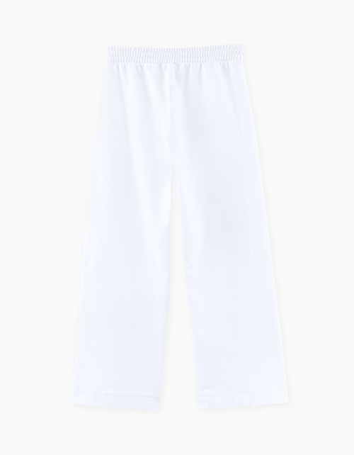 Стильные белые широкие блюки для девочки. Комфортная модель на эластичном поясе декорирована вышивкой.