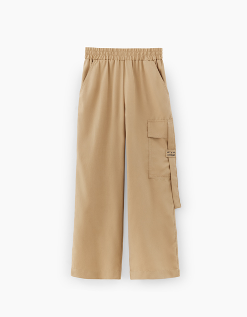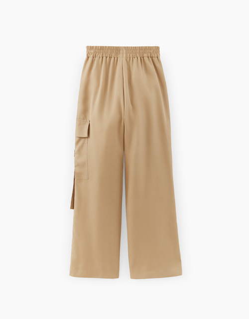 Модные бежевые брюки карго для девочки. Широкая модель со средней посадкой. Изделие из лёгкого и мягкого лиоцелла.