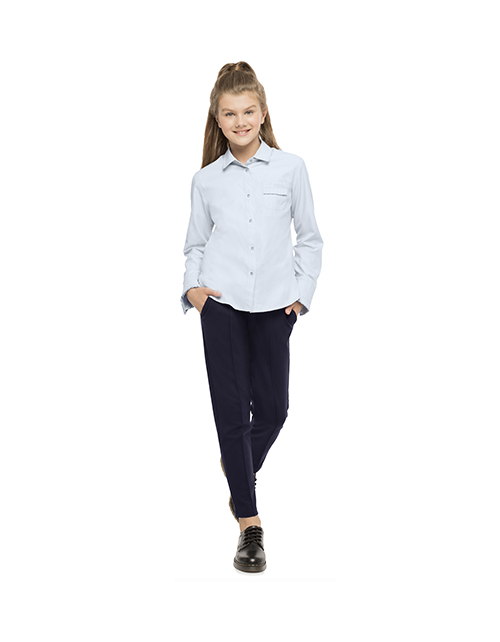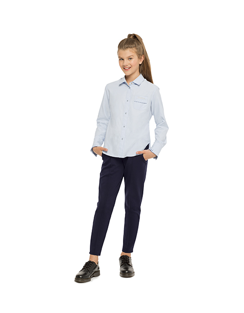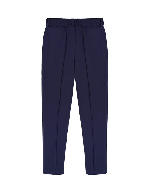Зауженные книзу брюки-каррот для девочки из комфортного джерси станут прекрасной основой повседневного школьного образа. Тонкие защипы на передней части брюк придают образу строгость и элегантность.