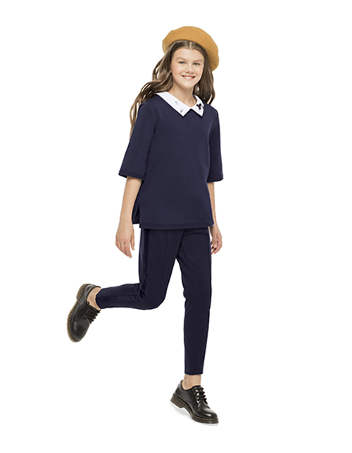 Школьные брюки для девочки - изделие из разряда Must Have! Бархатные лампасы вносят в школьный образ ноту спортивной эстетики. Комфортный силуэт и мягкий материал позволит девочке всегда чувствовать себя удобно и уверенно.