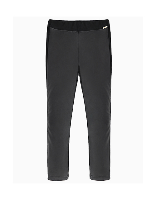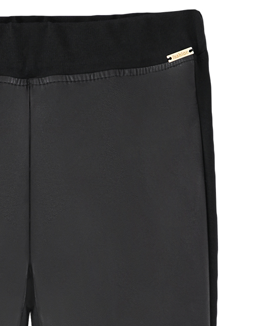 Брюки для девочки из кожзаменителя и трикотажной ткани футер с отделкой из вискозы имеют стильный дизайн и сочетаются с любой одеждой. Изделие зауженного силуэта дополнено удобной резинкой на поясе, что обеспечивает комфорт в носке.