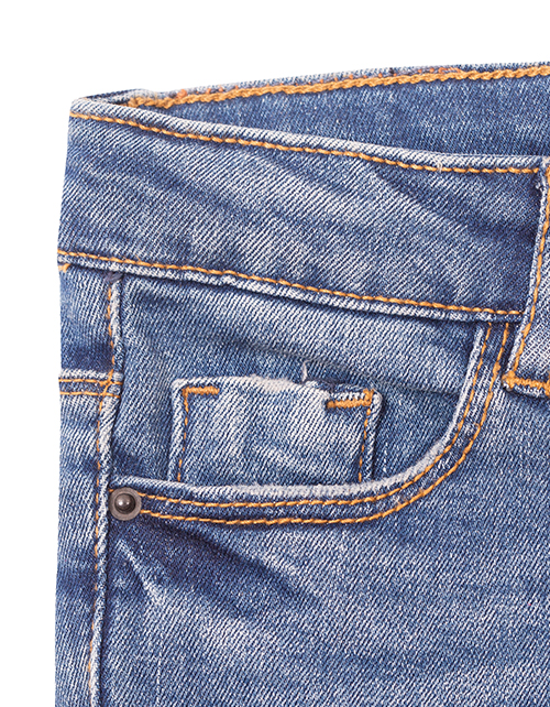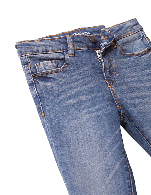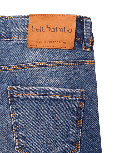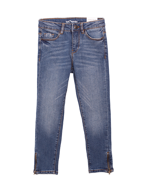 Темно-синие джинсы для девочки узкого прямого силуэта. Молнии в боковых швах по низу изделия. Передние и задние накладные карманы. Шлёвки по поясу.