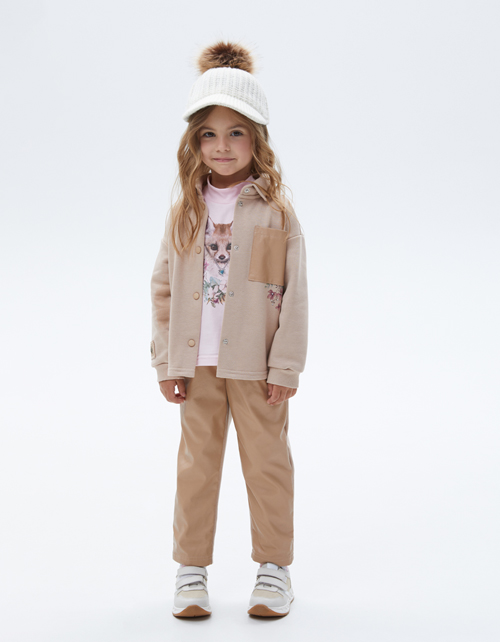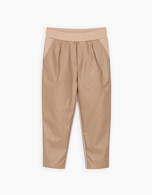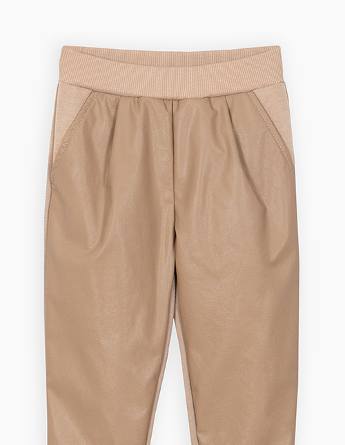 Брюки бежевые из эко-кожи для девочки