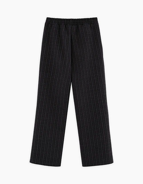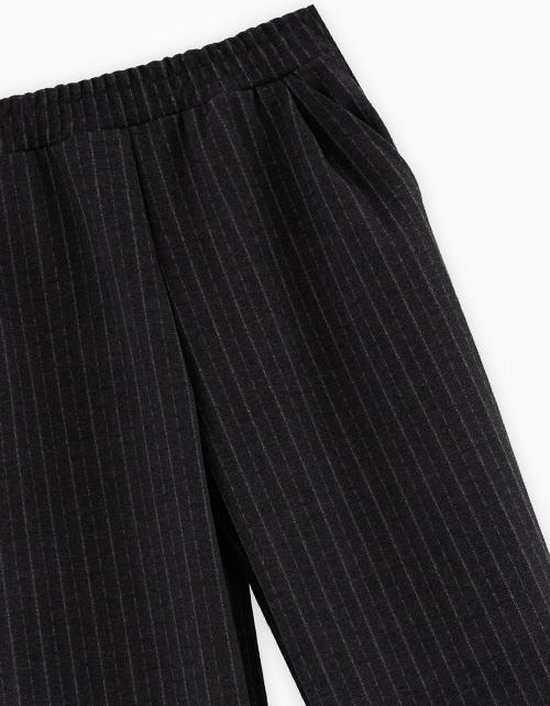 Базовые брюки в полоску для девочки. Прямая широкая модель со средней посадкой. Изделие без застежки, на мягком эластичном поясе. Брюки дополнены карманами-хулиганами. Модель из плотного трикотажного полотна.