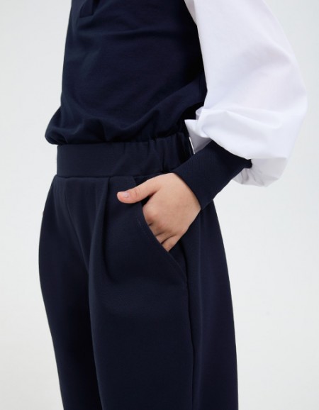 Брюки карго глубокого оттенка тосканская олива для девочки. Модель прямого силуэта. Изделие на мягком эластичном поясе, со средней посадкой. Глубокие карманы-хулиганы и накладной с клапаном. Брюки декорированы длинной патой с полукольцами.