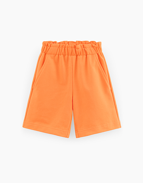 Модные брюки карго сочного оттенка райский мандарин для девочки. Прямая модель на резинке, средняя посадка. Брюки выполнены из футера с браш-эффектом.