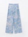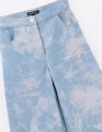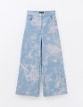 Голубые прямые широкие брюки из денима, держат форму и выглядят аккуратно. Средняя посадка обеспечивает комфорт, пояс с регулировкой помогает подобрать объём. Застёжка на кнопку и молнию, боковые карманы добавляют практичности.