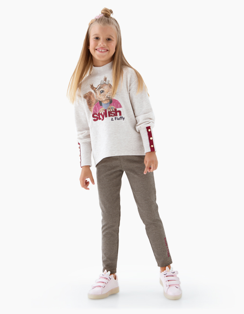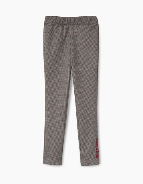 Брюки прилегающего силуэта для девочки-подростка. Выполнены из имитации костюмной ткани. Комфортная посадка благодаря поясу на эластичной ленте. Декорированы вышивкой с левой стороны внизу вдоль бокового шва