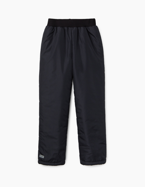 Теплые брюки для девочки. Прямого силуэта, на эластичной трикотажной резинке. Выполнены из плащевой ткани черного цвета с водоотталкивающими свойствами. Утеплены синтепоном