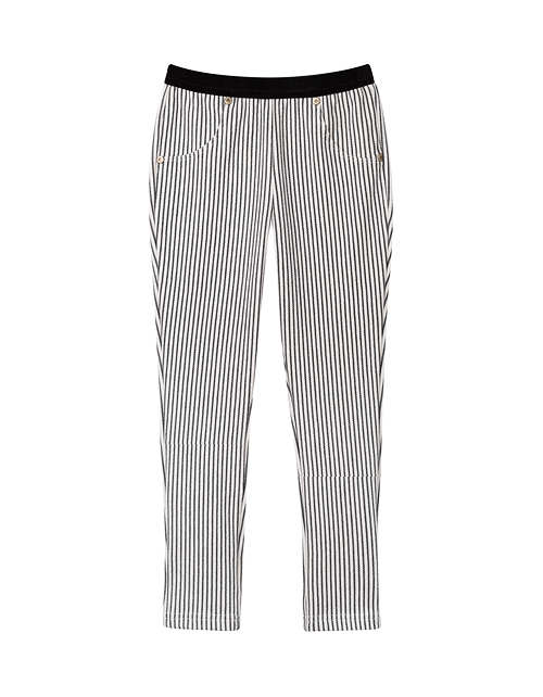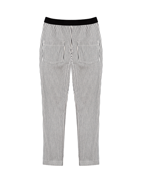 Удобные и стильные брюки-каррот из натуральной ткани, с особенно актуальным в этом сезоне принтом полоской, и контрастным эластичным поясом, станут прекрасной основой для повседневного образа. Запоминающийся и комфортный дизайн и универсальная цветовая га