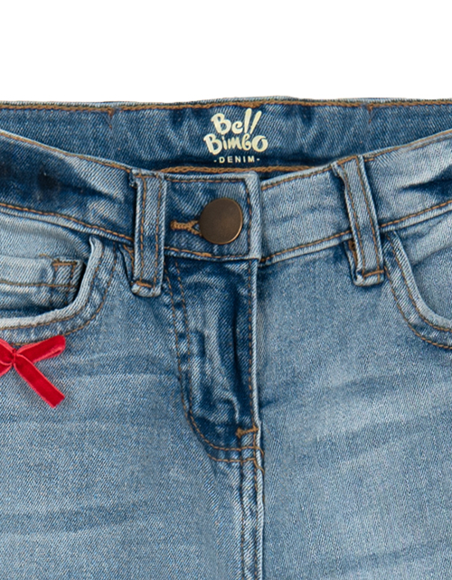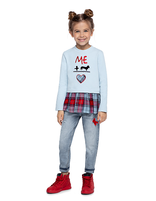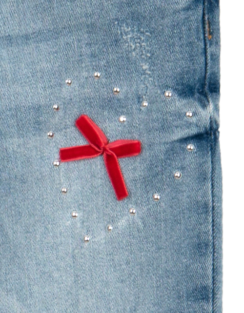Джинсовые брюки для девочки зауженного силуэта дополнены подворотами, застежкой на молнии, пятью карманами и стильными вышивками и потертостями. Джинсовая ткань гарантирует износостойкость и приятные тактильные ощущения.