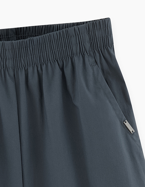 Стильные графитовые брюки для девочки. Модель на мягком поясе с наклонными боковыми карманами. Декорирована металлической нашивкой и трансферной пленкой.