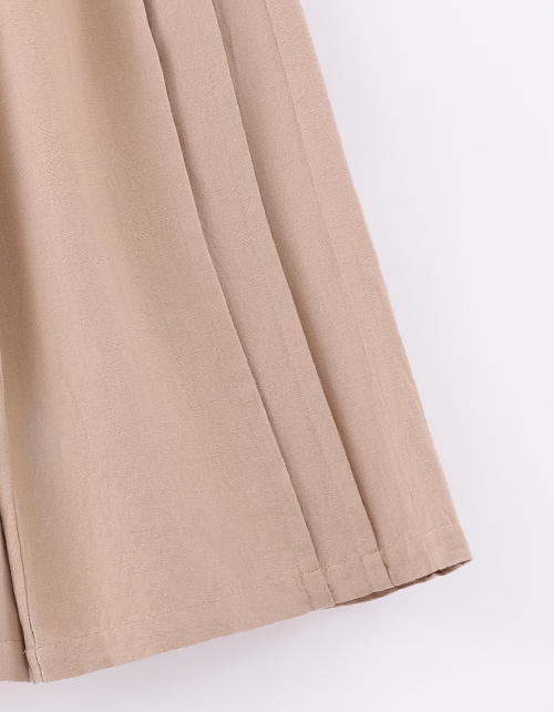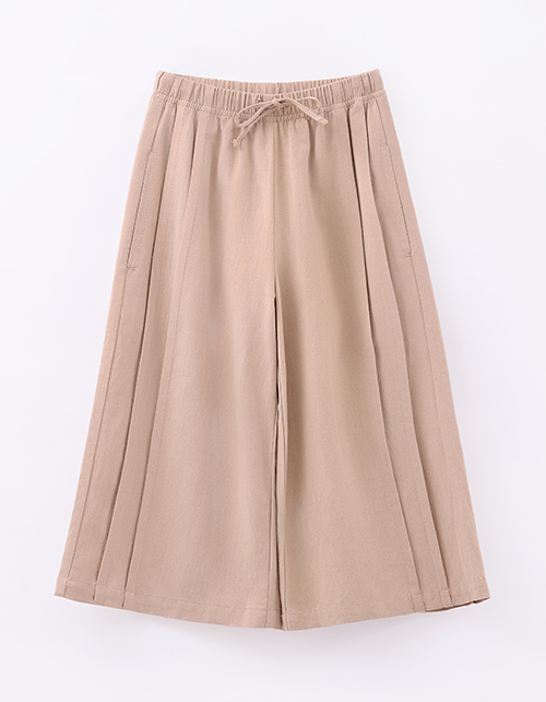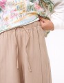 Льняные капри в светло-коричневом оттенке создают лёгкий образ. Прямой широкий крой не мешает активности. Длина до середины икры смотрится аккуратно и остаётся практичной. Защипы добавляют объёма. Пояс регулируется мягким шнурком для удобной посадки.
