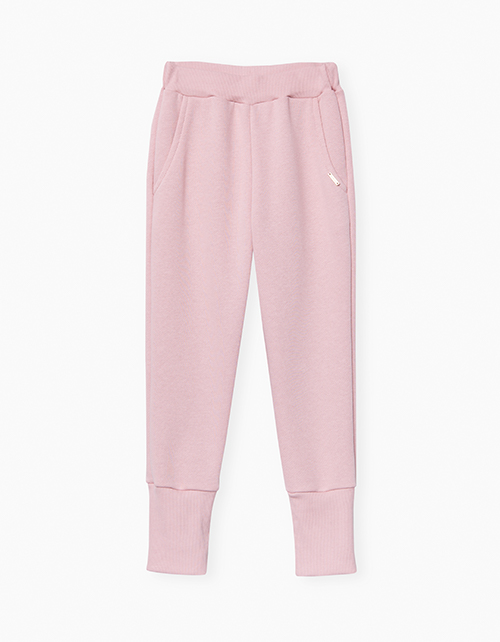 Темно-розовые брюки-джоггеры зауженного силуэта, с высокими манжетами и поясом из рибаны. Образ дополняют вместительные карманы-хулиганы и декор в виде миниатюрной золотистой нашивки с надписью Fashion.