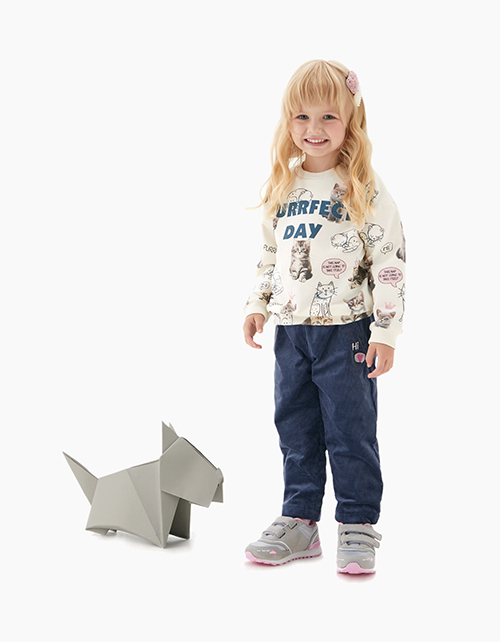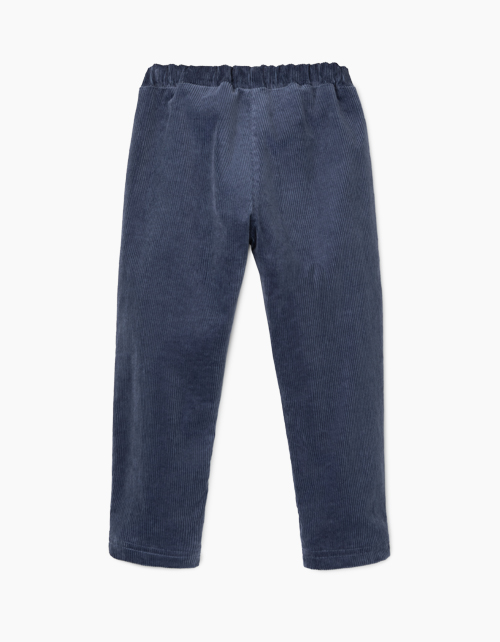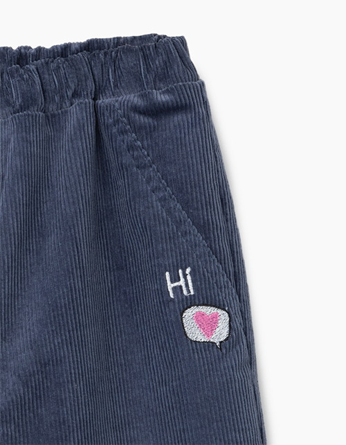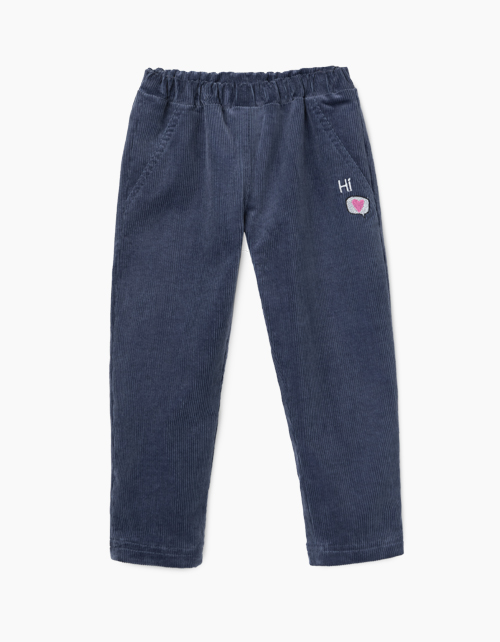 Вельветовые брюки цвета деним для девочки. Боковые карманы. Принт в стилистике капсулы "Пушистые принцессы"