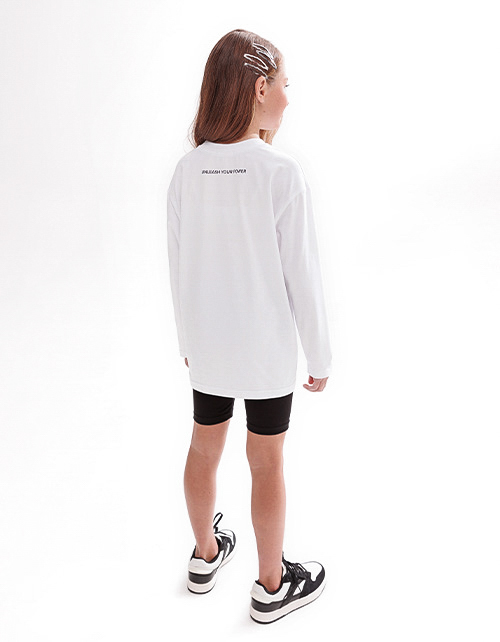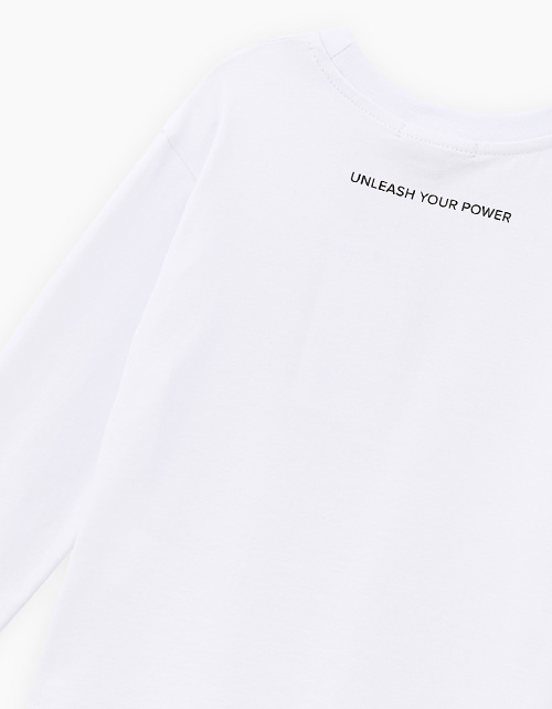 Белый лонгслив. Актуальная прямая расслабленная модель с авторским лаконичным мотивационным принтом. Эластичная горловина из рибаны. Универсальная базовая модель, которая легко комбинируется и подходит для разных сфер носки: от спорта до прогулок.