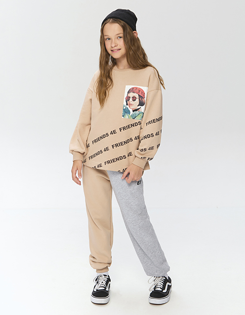 Свитшот в трендовом оттенке "сливочный латте". Повседневная модель с тематическим принтом.