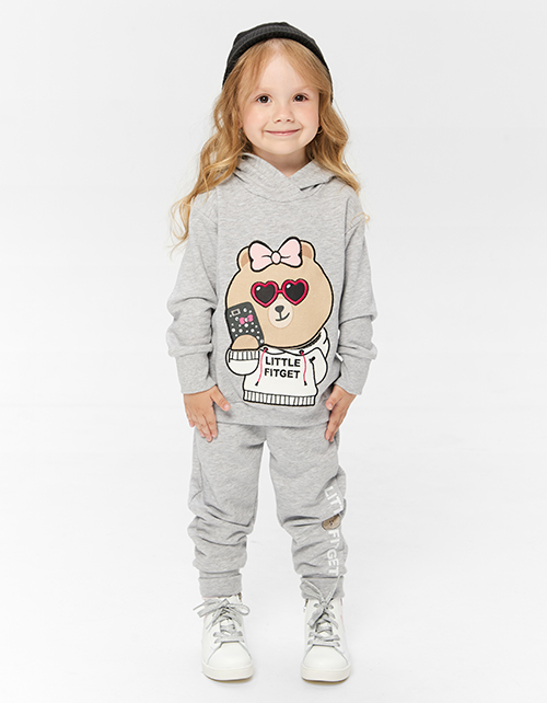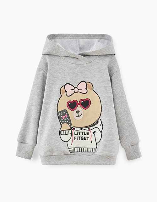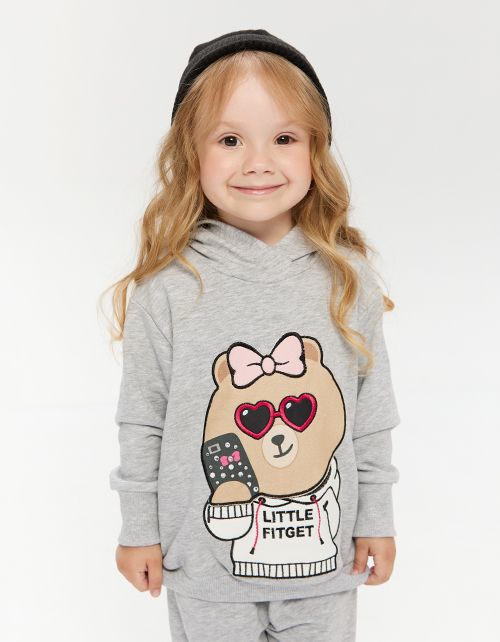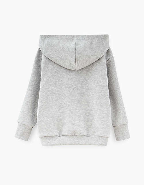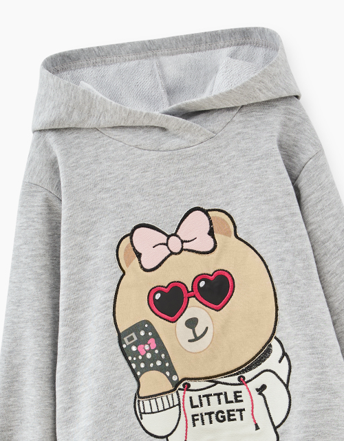 Комфортное худи цвета серый меланж для девочки. Эффектная модель выделяется вышивкой с яркой тематической аппликацией.