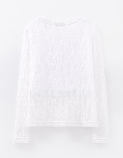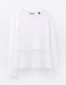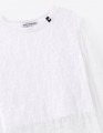 Двухслойный белый лонгслив: мягкий хлопковый топ обеспечивает комфорт, сверху - ажурный кружевной слой с лёгким воздушным эффектом. Модель выглядит аккуратно и нарядно. Лаконичная жемчужина добавляет деликатный акцент.