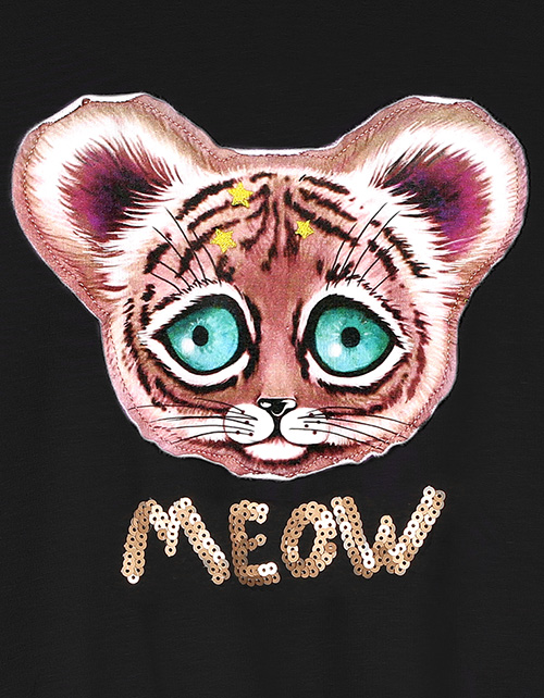 Джемпер для девочки с рисунком в виде тигренка имеет свободный силуэт и круглый вырез горловины. Изделие дополнено манжетами с отделкой контрастной тканью. Трикотажное полотно футер гарантирует приятные тактильные ощущения и износостойкость.