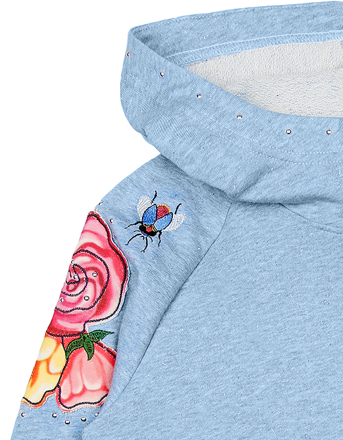 Приемы отделки и декорирования: цифровая печать; стразы; вышивка с аппликацией