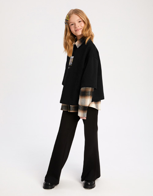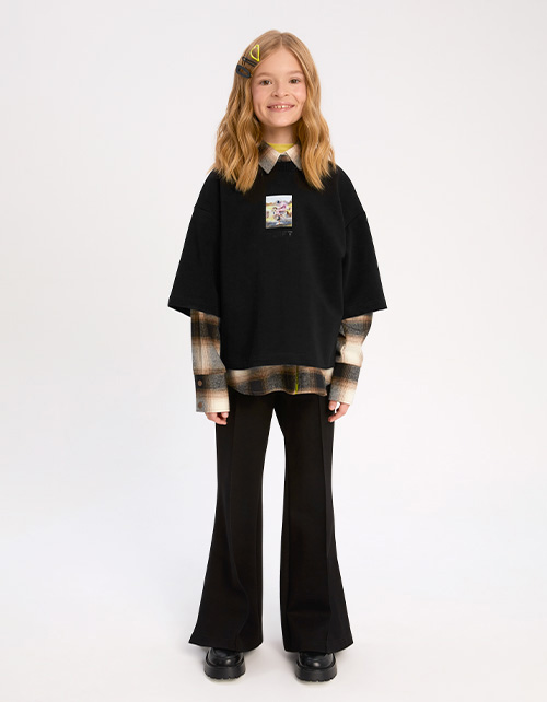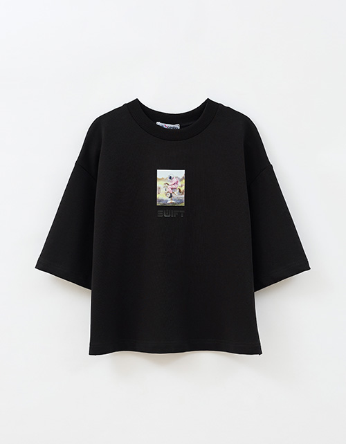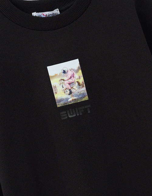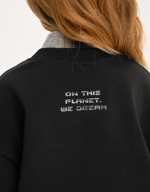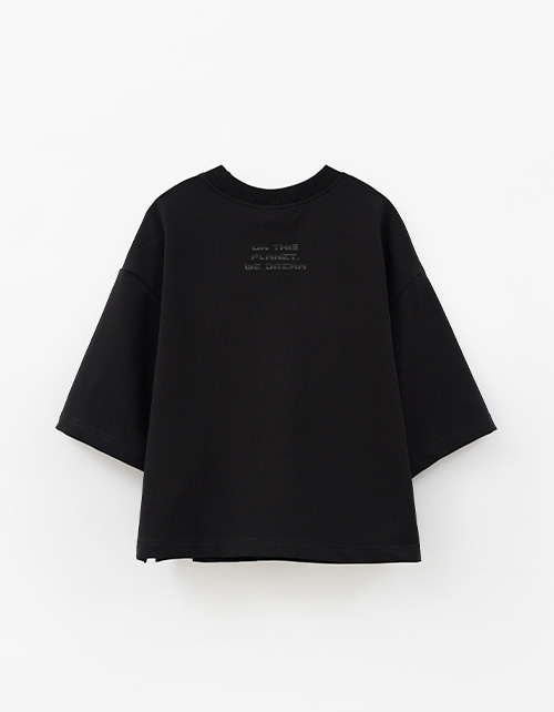 Стильный укороченный свитшот с короткими рукавами для девочки. Модель комфортного прямого силуэта, с разрезами по боковым швам. Приспущенная линия плеча. Горловина из мягкой эластичной рибаны. Декор с использованием инновационной DTF-плёнки.