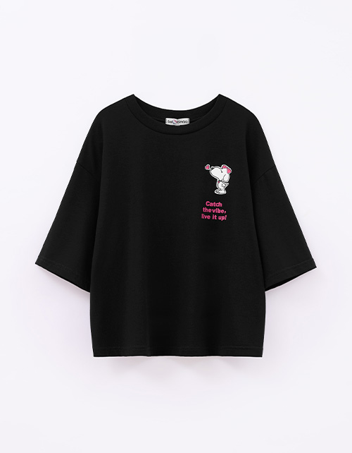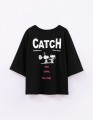 Чёрная укороченная футболка с oversize посадкой создаёт расслабленный образ. Прямой крой и приспущенная линия плеча дают свободу движений. Принт с DTF, трансфером и флоковой плёнкой добавляет выразительный акцент и подчёркивает характер модели.
