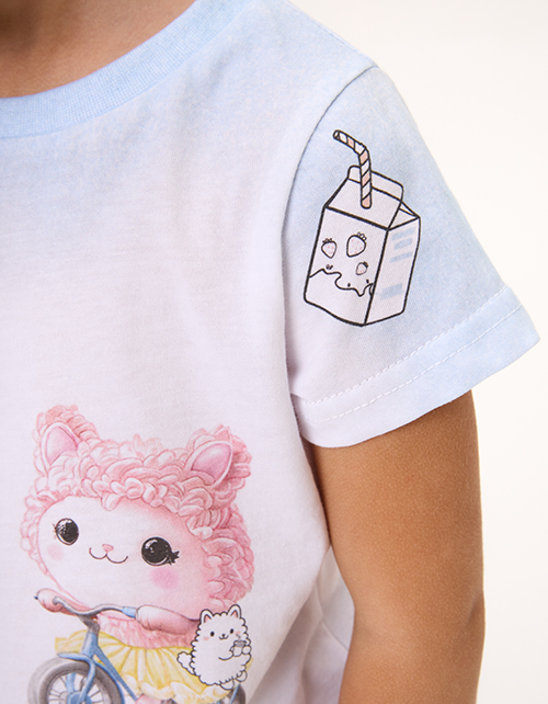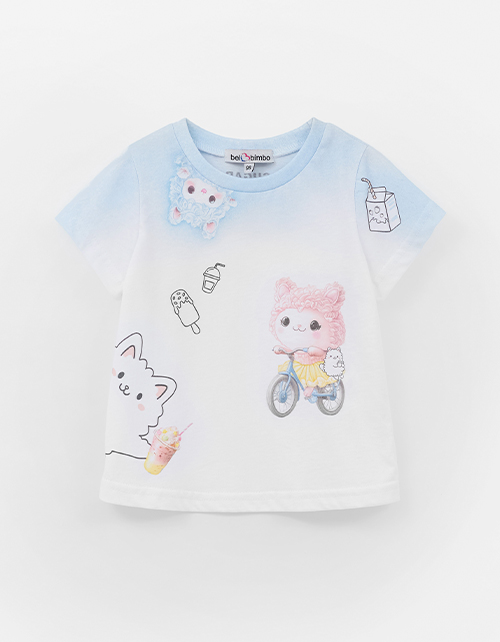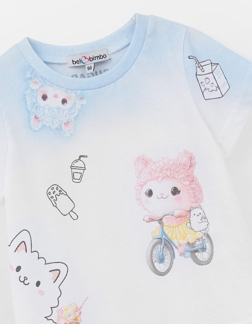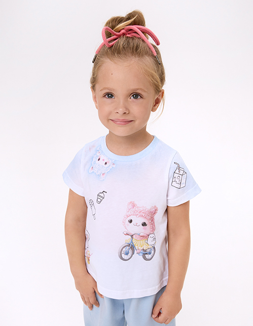Футболка для девочки. Прямой силуэт обеспечивает комфорт. Яркий авторский принт, выполненный термотрансферной плёнкой и цифровой печатью, подчёркивает стиль. Эластичная горловина из рибаны.