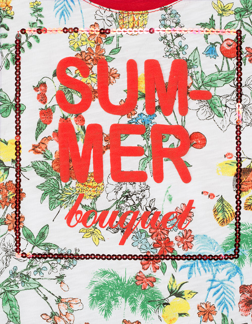 Приемы отделки и декорирования: трафаретная печать объемная; вышивка пайетками