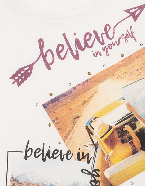Стильная и комфортная футболка для самой очаровательной любительницы приключений. Авторский принт с позитивными мотивационными надписями вдохновит девочку воплощать в жизнь все свои мечты, оставив позади сомнения и страх