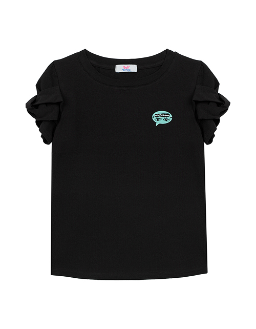 Стильная футболка из мягкой ткани гармонично сочетает в себе безупречный вкус и комфорт. Необычная конструкция рукавов придаёт изделию новизну и актуальность, забавный значок завершает образ и наполняет его индивидуальностью