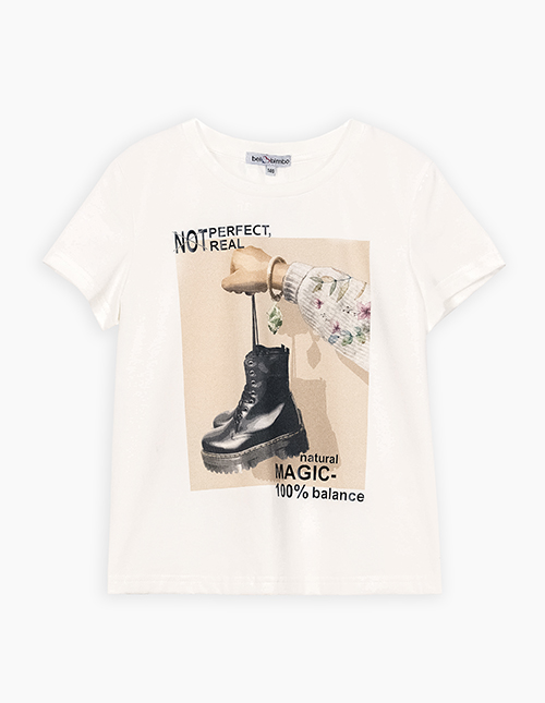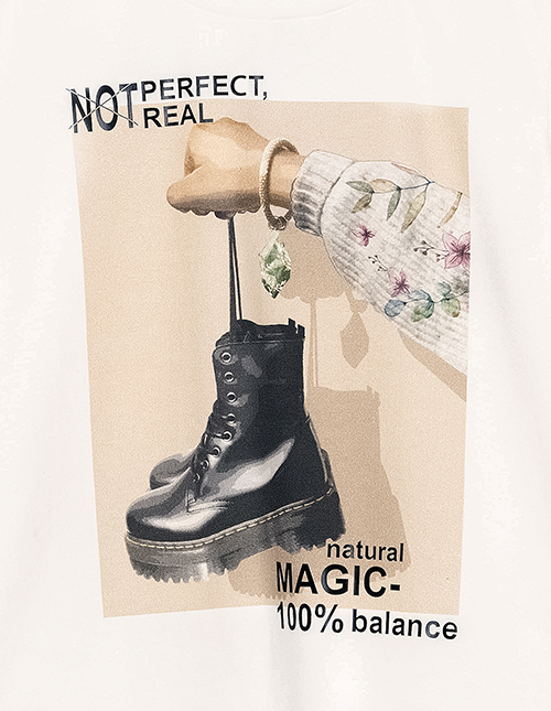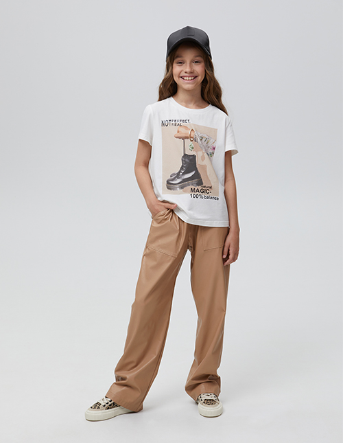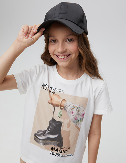 Стильная футболка для девочки. Модель прямого силуэта. Изделие декорировано дизайнерским цифровым принтом.
