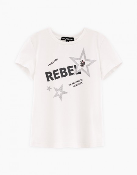 Укороченный топ модного свободного силуэта с разрезом по линии горловины. Выполнен из светло-розовой кулирной глади. Горловина отделана рибаной в тон и декорирована контрастным шрифтовым принтом Create your mood ("Создай свое настроение")