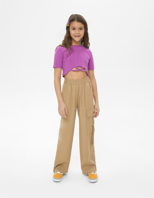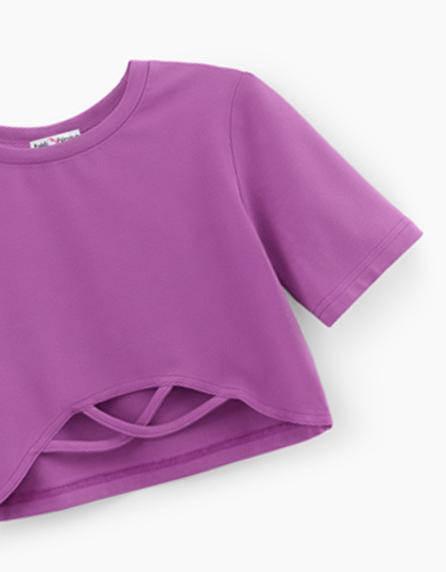 Топ насыщенного оттенка ирисовая орхидея. Укороченная модель прилегающего силуэта.