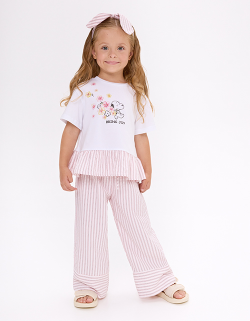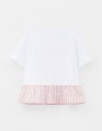 Белая блузка с лёгким oversize создаёт воздушный образ. Прямой верх из мягкого хлопка сочетается с баской из поплина, добавляя объёма и движения. Приспущенная линия плеча делает посадку расслабленной. Авторский принт со стразами добавляет нежный акцент.