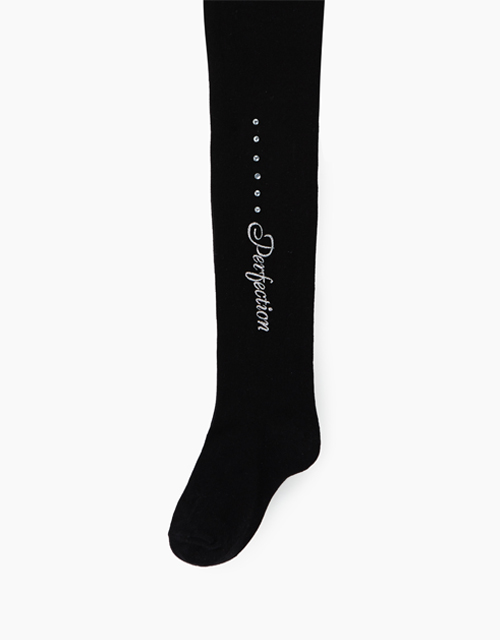 Черные колготки из мягкого хлопка. Декорированы стразами и глиттерной надписью
