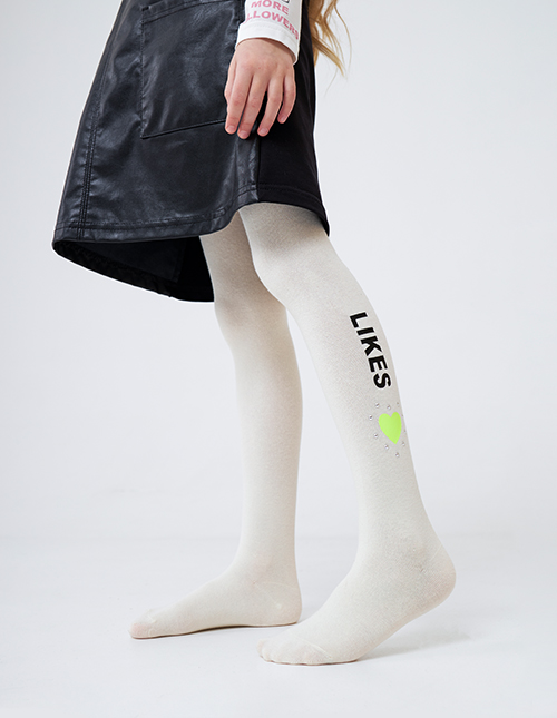 Молочные колготки с эластичным поясом для девочки. Однотонное изделие декорировано с двух сторон надписью и стразами.