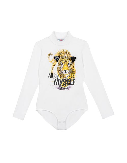 Белый боди для девочки с принтом в виде леопарда дополнен удобной застежкой на кнопках и высоким воротником. Приталенный силуэт позволят носить комбинезон и под теплую одежду. Ткань кулирная гладь гарантирует приятные тактильные ощущения.