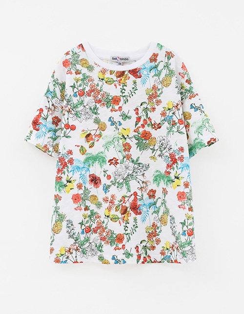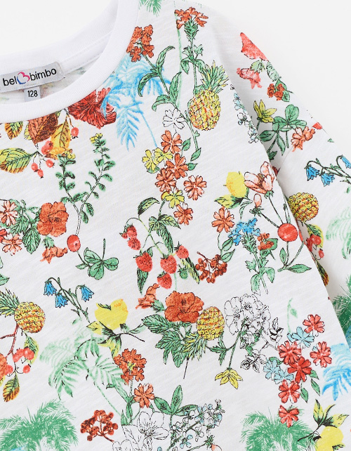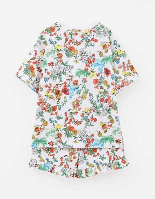 Пижамный сет из натурального хлопка для девочки: футболка и шорты с ярким принтом-садом. Сон в стиле мечты - мягкая ткань, эластичная горловина и лёгкие рюши дарят комфорт и свободу движений. Гипоаллергенный, дышащий, идеальный для сна и отдыха.