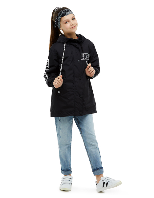 Девочка по достоинству оценит стильный дизайн и комфортность данной куртки! Высокотехнологичный материал и удобный капюшон надёжно защитят от дождя и ветра. Удлиненная спинка с разрезом и декор с мотивационными фразами делают модель эксклюзивной