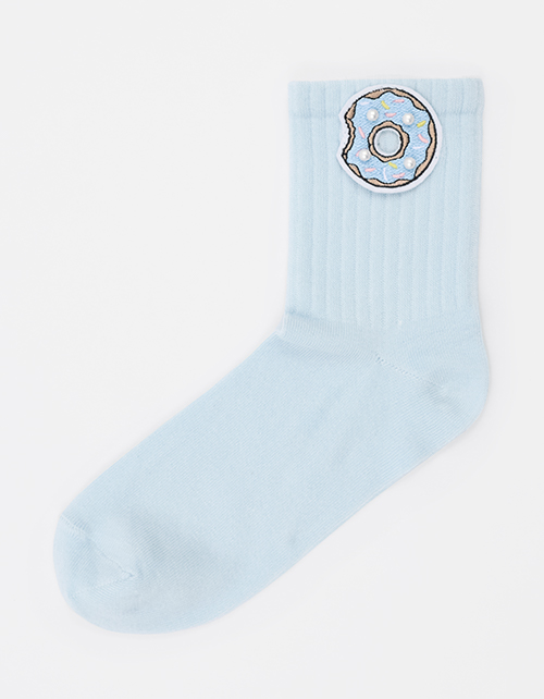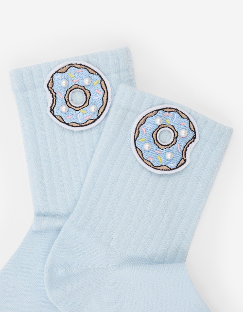 Голубые трикотажные носки с аккуратной вышивкой и нежными жемчужными деталями создают лёгкий, нарядный акцент в образе. Мягкая структура комфортна в носке и хорошо держит форму. Лимитированная коллекция.