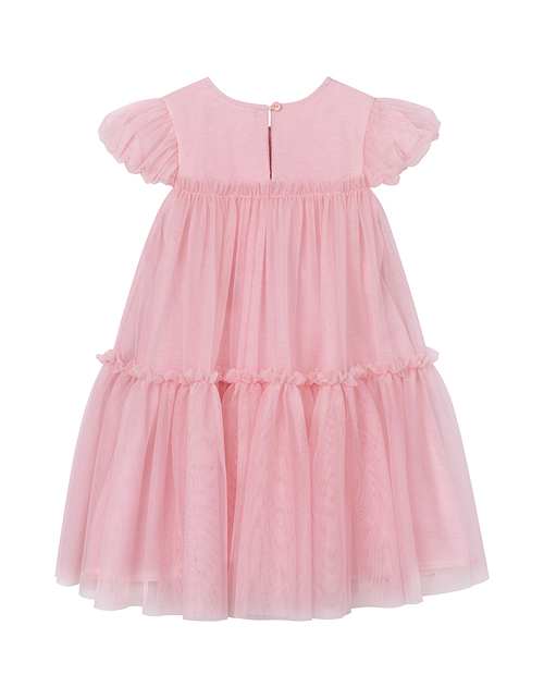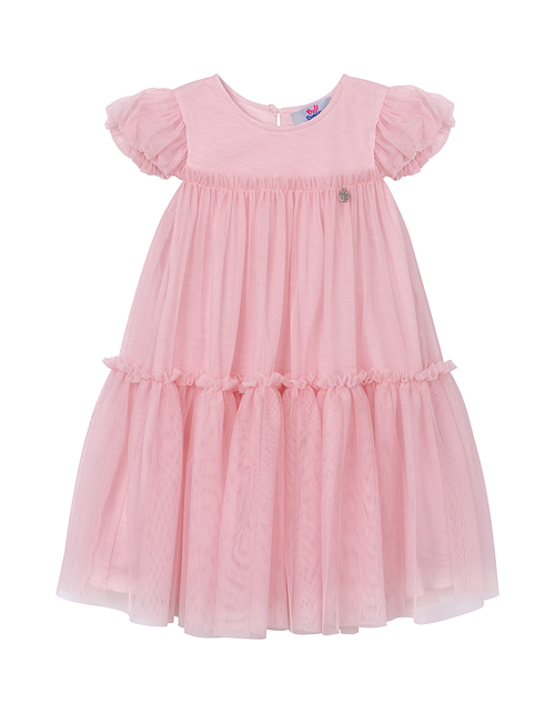 Изящное воздушное платье с милыми воланами и рюшами для самой очаровательной принцессы! Невесомая сеточка поверх натуральной мягкой подкладки создаёт самый волшебный образ. Нежная пудровая расцветка и летящий силуэт выглядят просто восхитительно
