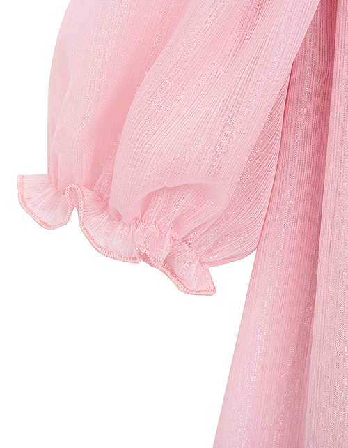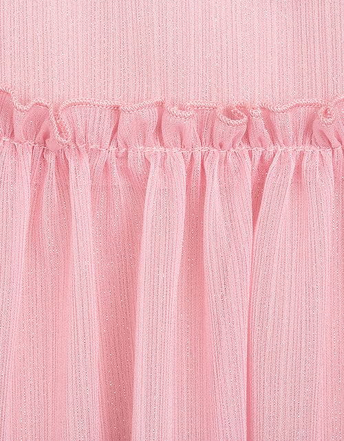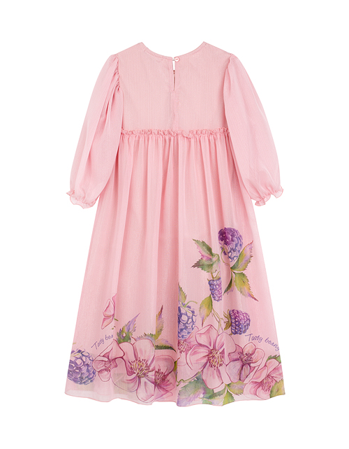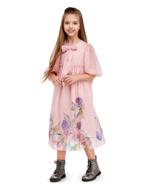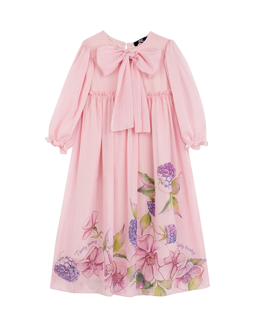 Романтичное платье с милыми рюшами, большим очаровательным бантиком и завышенной талией. Комфортный силуэт, лёгкая ткань с сияющими вкраплениями, нежная расцветка и восхитительный флористический принт создают обворожительный образ