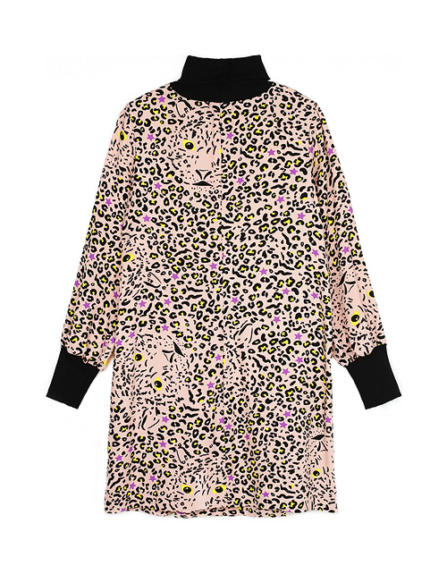 Платье для девочки свободного силуэта дополнено контрастным высоким воротником, манжетами на рукавах и вставкой в районе пояса из рибаны с декоративной молнией. Ткань плательная из 100% вискозы гарантирует приятные тактильные ощущения и комфорт в носке.