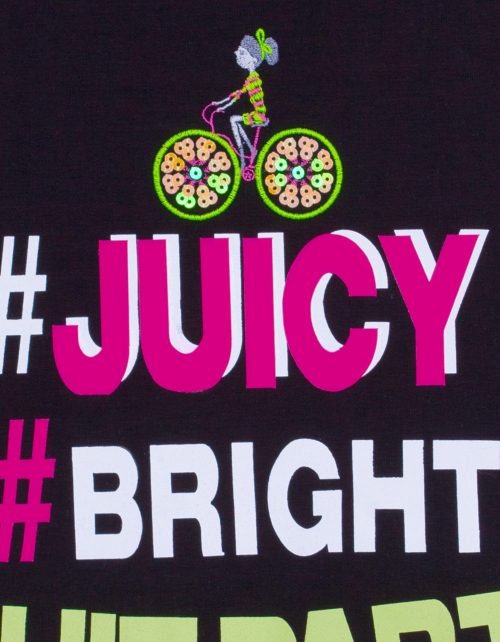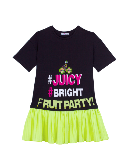 Черное платье для девочки. Дизайнерское оформление в стиле капсулы "Фруктовый микс", вышивка, пайетки. Юбка с воланами.