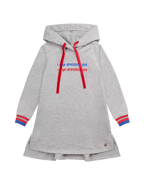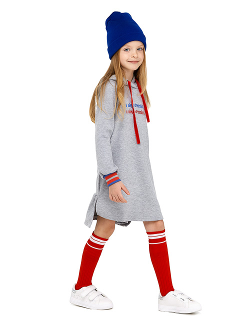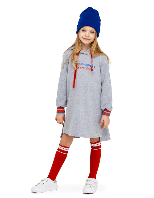 Комфортное платье-худи свободного кроя оверсайз. Очень удобное, оно прекрасно впишется в повседневный городской образ современной девочки. Уютный капюшон, стильные яркие надписи на тему шопинга понравятся девочке и её маме